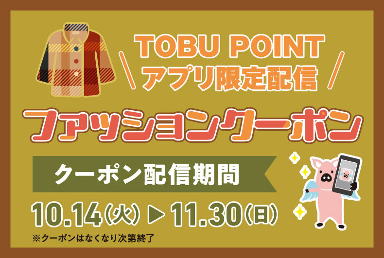 TOBUPO 5th Anniversary Thanksgiving TOBU POINT app exclusive "Fashion Coupon"
