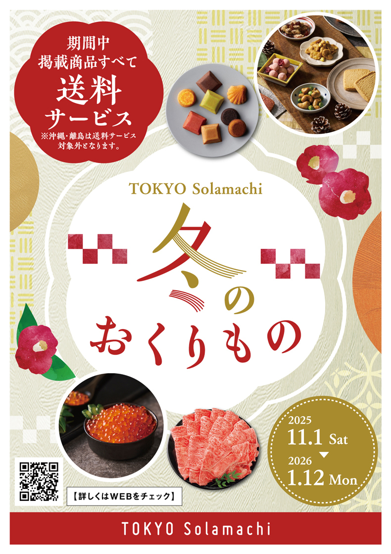 TOKYO Solamachi is running a free shipping campaign "Winter Gifts" only for eligible products from 11/1.