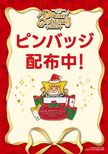 During the period, customers who make purchases of 1,000 yen (tax included) or more per receipt at participating stores will receive a free Christmas pin badge on a first-come, first-served basis.