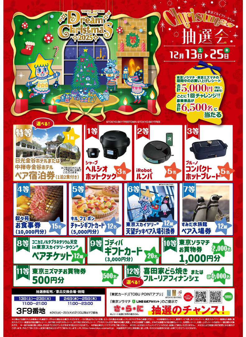 In addition, you can take on one additional challenge each by presenting your purchase receipt during the Tobu Card, TOBU POINT app, TOKYO Solamachi official LINE account, and TOKYO mizumachi!