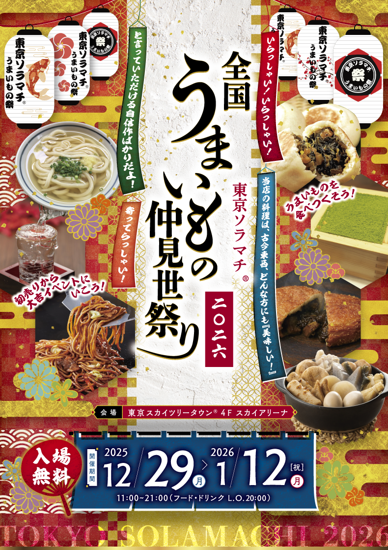 The first gourmet event held during the New Year's period, the "TOKYO Solamachi ® National Delicious Nakamise Festival", features a variety of "delicious foods", from local cuisine from all over the country to much-talked-about B-class gourmet food.