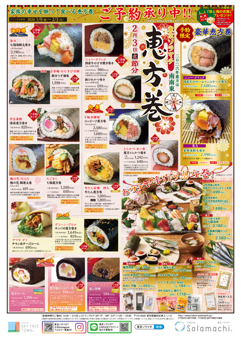 TOKYO Solamachi" Food Marche" has started reservations for Ehomaki at each store from 1/9!