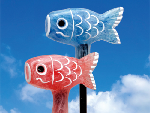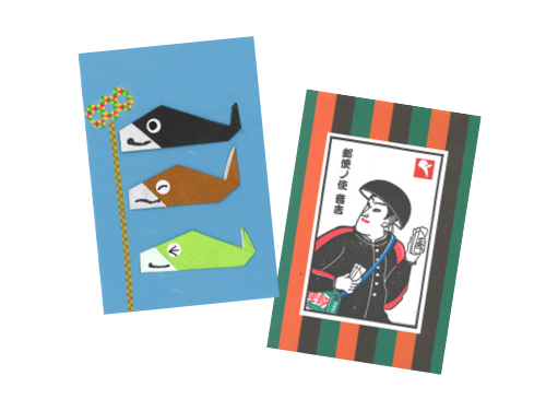 Just like a multi-color woodblock print, the picture is completed by layering stamps! You can frame it and display it, or since it's postcard size, you can send it as a letter. In addition, we'll make a carp streamer card by decorating an origami carp streamer with stamps and masking tape.