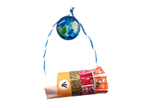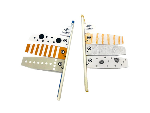 We'll make carp streamers using empty containers, paper cups, used stamps, and masking tape.