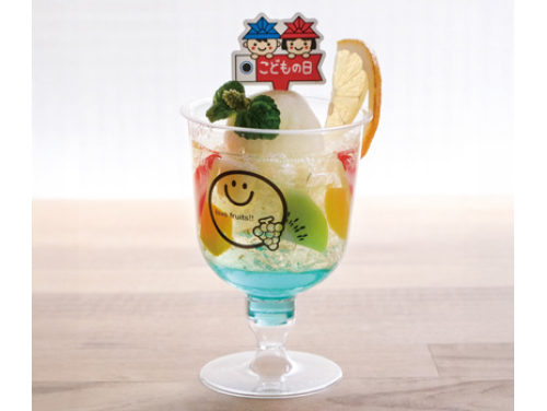 We can create a food sample of a refreshing blue and cider-flavored tropical juice packed with fruit.