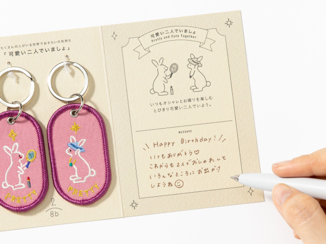 We have prepared a wide variety of keychains that are filled with special feelings.