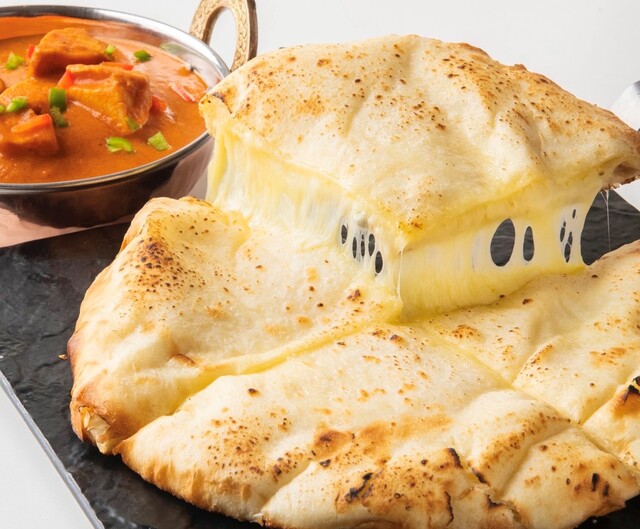 Butter Chicken Curry & Cheese Naan Set (¥1,890 tax included)A popular set of butter chicken curry and melty cheese naan |
