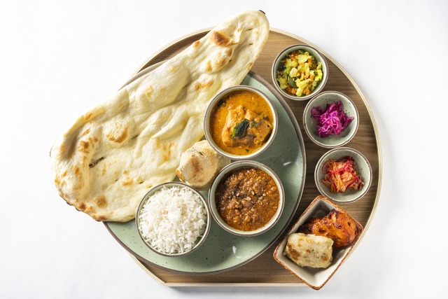 Skytree Set (¥2,190 tax included)This King's Set features nine jewel-like dishes served on one plate. It is a satisfying dish that includes your choice of two curries, two grilled dishes, papadum, naan and rice, and a side dish. |