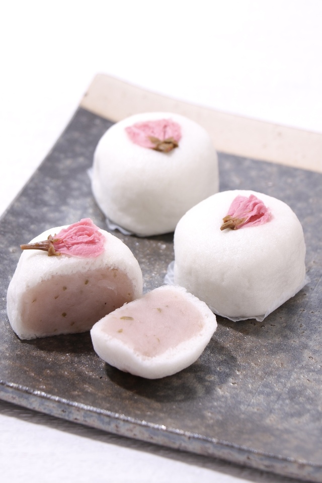 It is topped with a pale pink cherry blossom bean paste...