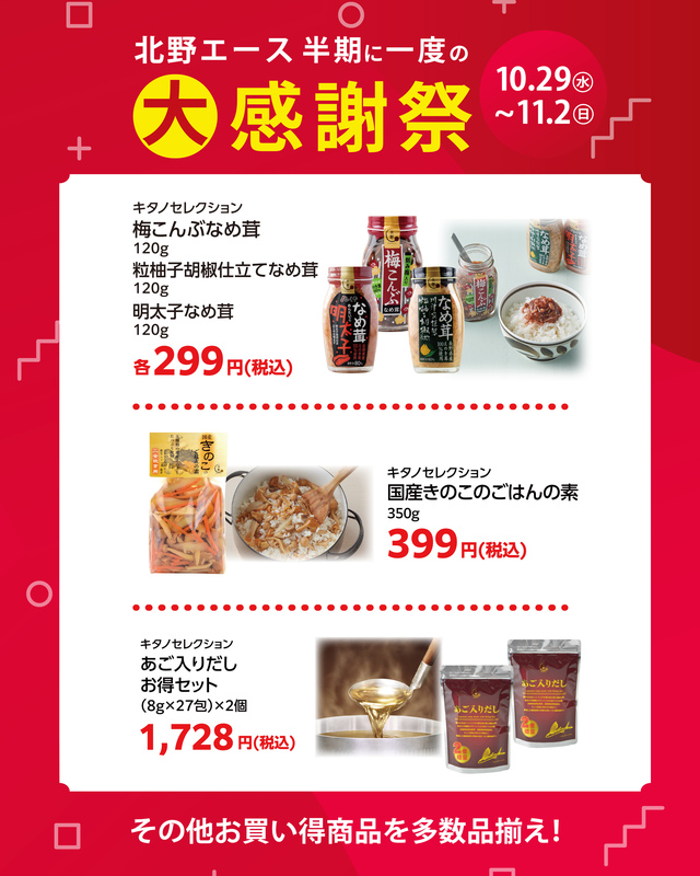 KITANOACE Thank you for your continued patronage, from 10/29 (Wed) to 11/2 (Sun),