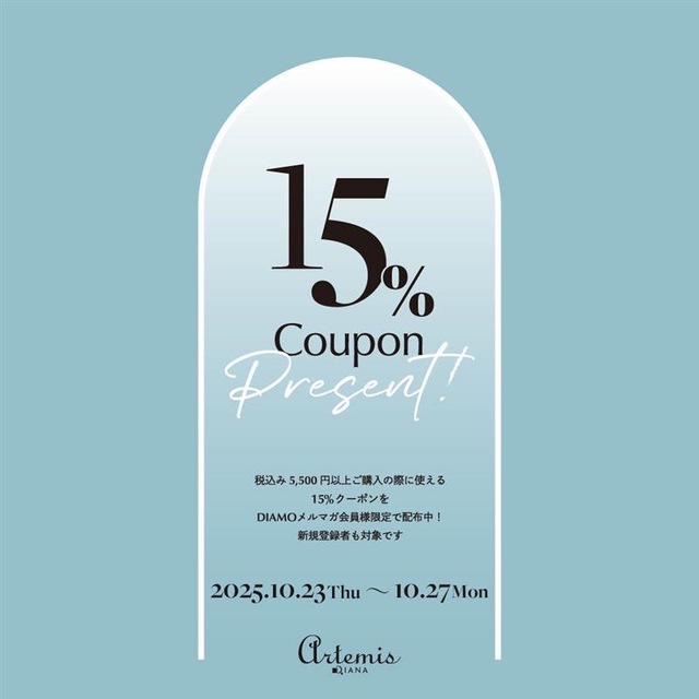 For five days from October 23rd (Thursday) to October 27th (Monday), we will be distributing a 15% off coupon exclusively for DIAMO members, which can be used on purchases of 5,500 yen (tax included) or more.
