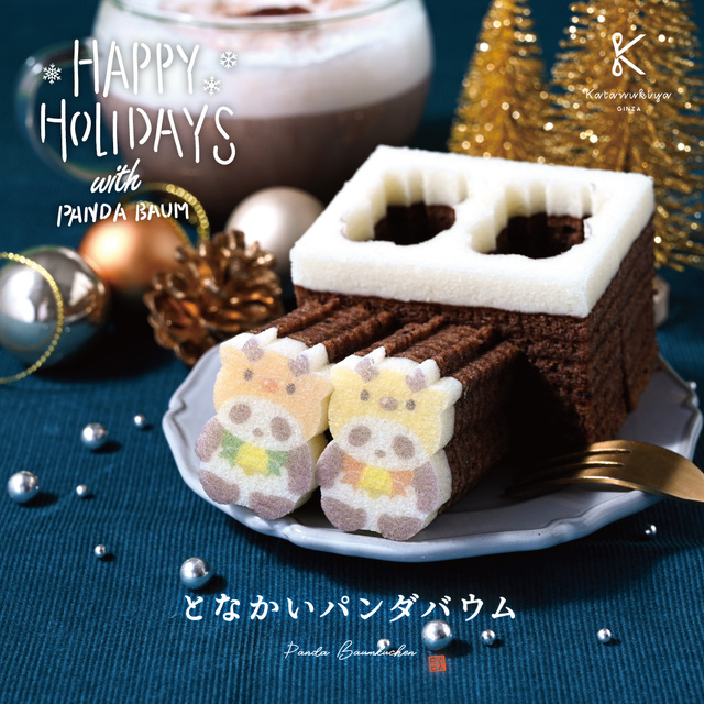Introducing the Christmas-only Panda Baumkuchen, featuring Santa Claus and his reindeer.