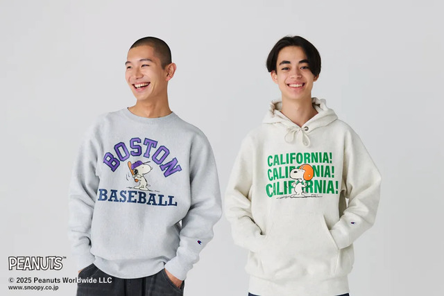 A sweatshirt with an Champion original item from PEANUTS, known for SNOOPY, is now available.