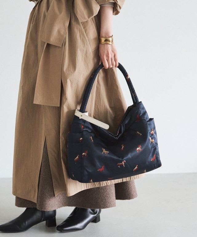 The horse motif adds a subtle rhythm to the soft, shiny nylon, elevating your outfit with elegance.