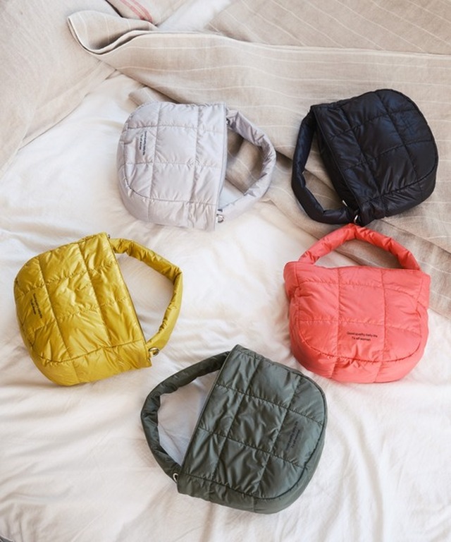 It comes with a puffy shoulder strap made of the same material as the main body, making it a 2-way design that can be worn cross-body or carried by the handle!