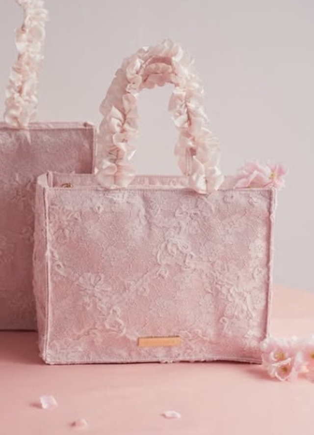淡く柔らかなピンクカラーで統一したバッグとポーチ