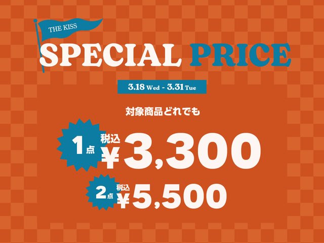 SPECIAL SALE: 1 item for ¥3,300 (tax included) / 2 items for ¥5,500 (tax included)!