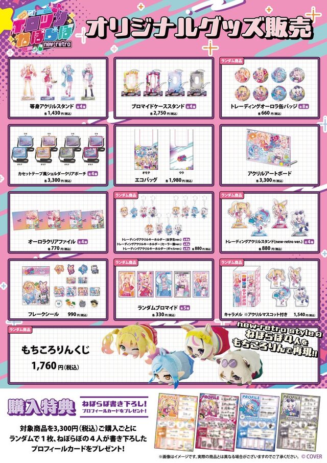Merchandise featuring newly drawn illustrations of the four 5th generation members of "Hololive"—Momosuzu Nene, Omaru Polka, Yukihana Lamy, and Shishiro Botan—will be available for purchase, along with a photo spot!