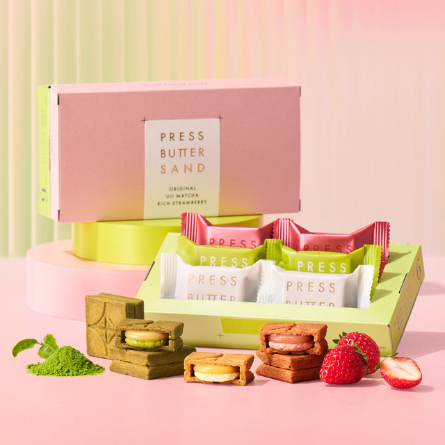 This assortment includes three types of butter sandwiches: the classic "Butter Sandwich," "Luxury Strawberry" which lets you savor the rich flavor of strawberries, and "Uji Matcha" which brings out the refreshing bitterness and aroma of Uji matcha in rich butter.