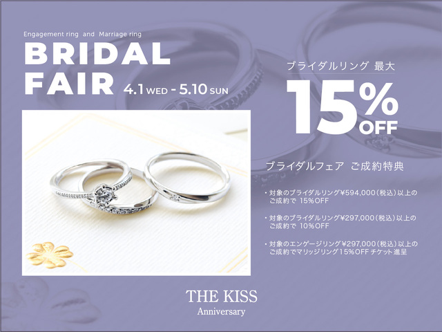 From April 1, 2026 (Wednesday) to May 10, 2026 (Sunday), we are offering great benefits to customers who sign a contract for a THE KISS Anniversary bridal ring.