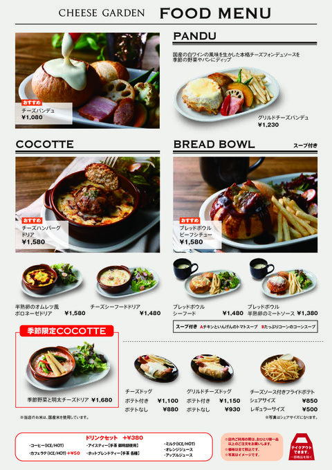Restaurants & Cafes〈CHEESE GARDEN〉List of weekday limited morning café menusCHEESE GARDEN2026年3月18日 ~ 2026年5月18日 -