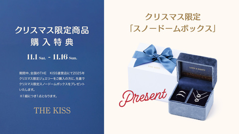 Goods & FashionLimited-time offer: Christmas limited edition product purchase bonus campaign from November 1st (Saturday) to November 16th (Sunday)THE KISS2025年11月1日 ~ 2025年11月16日 -